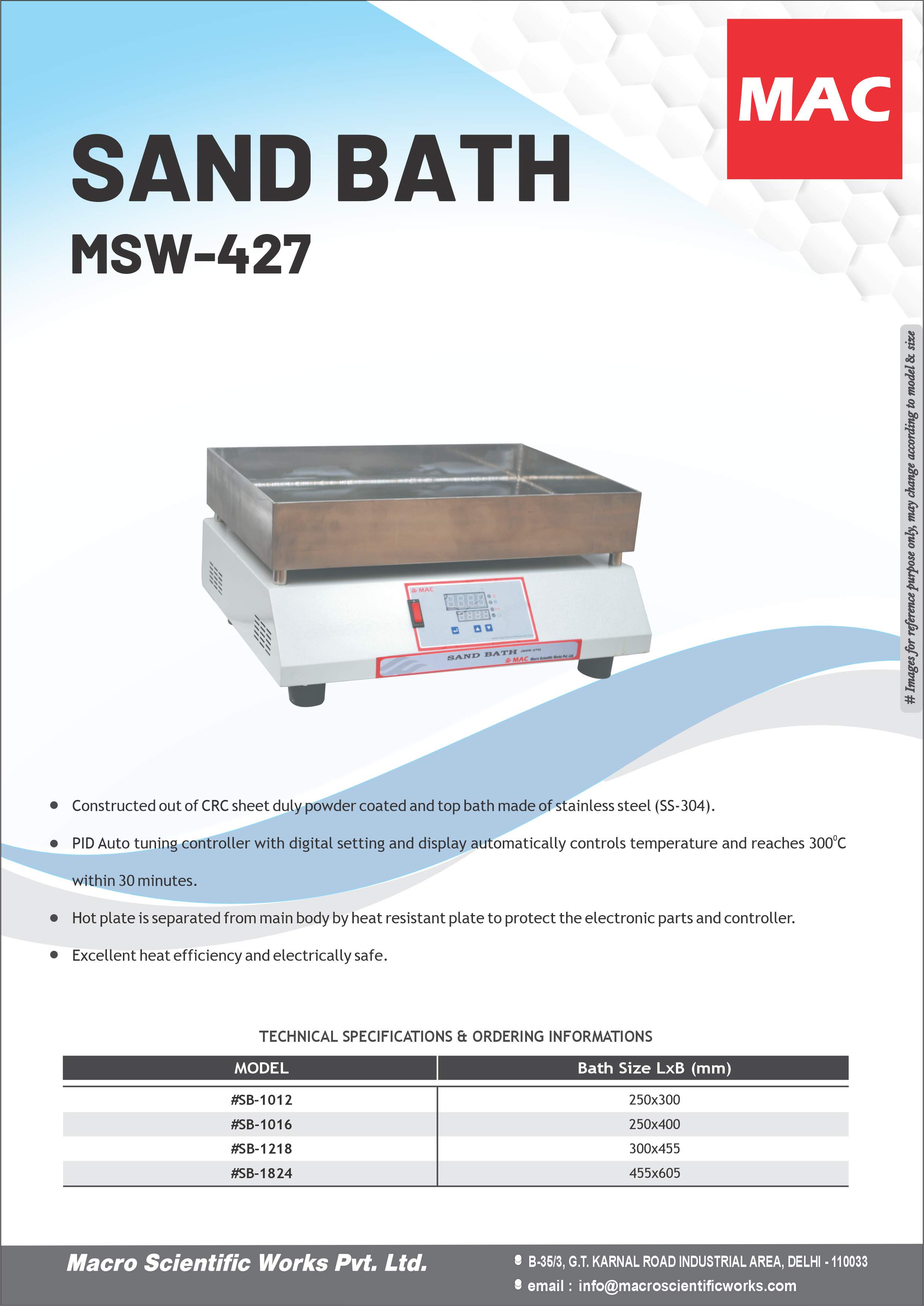 - Hot plate is separated from main body by heat resistant plate to protect the electronic parts and controller.