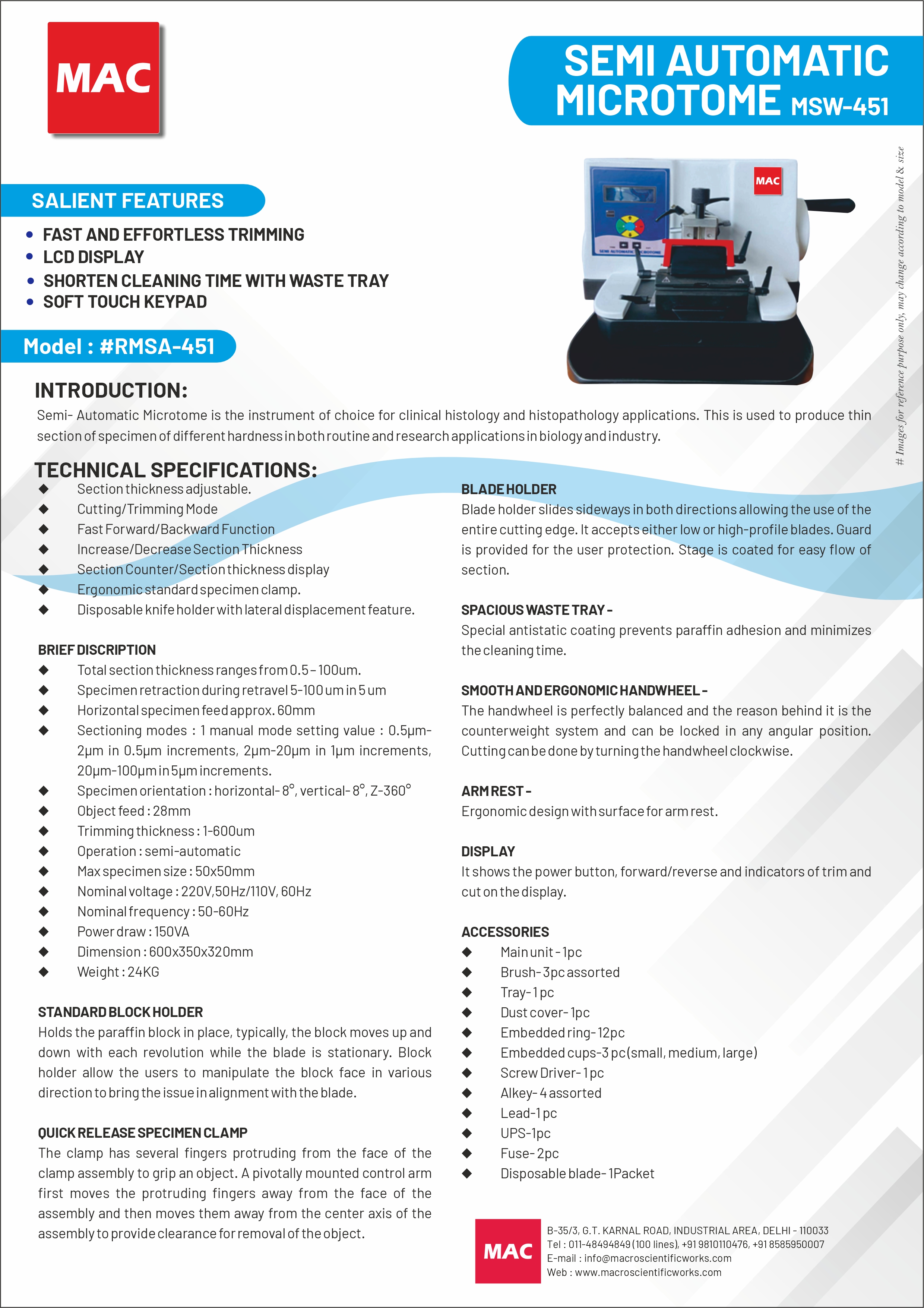 SEMI AUTOMATIC MICROTOME “MAC” MSW-451